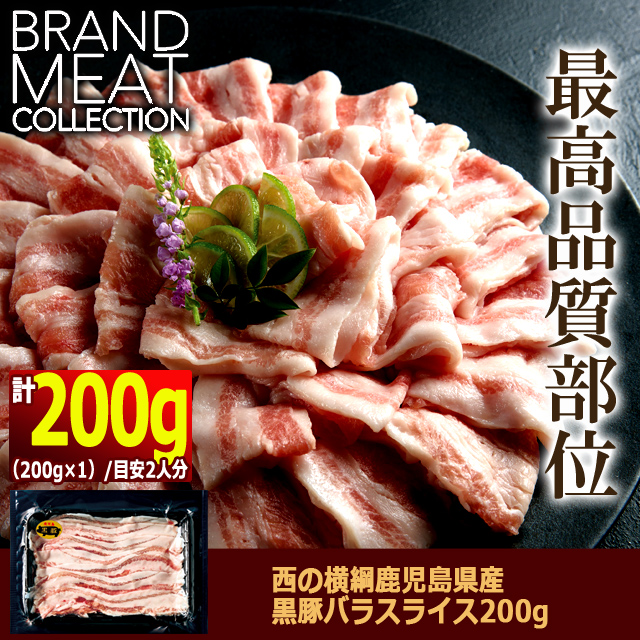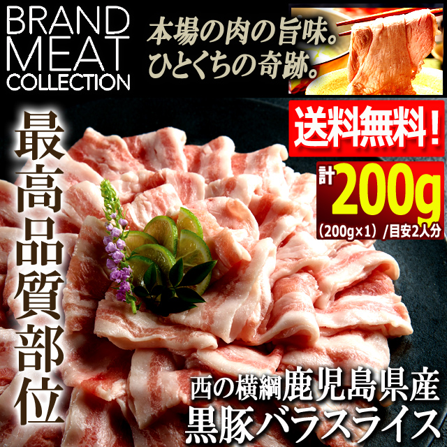 西の横綱鹿児島県産黒豚バラスライス200g 送料無料 肉の旨味 ブランド肉