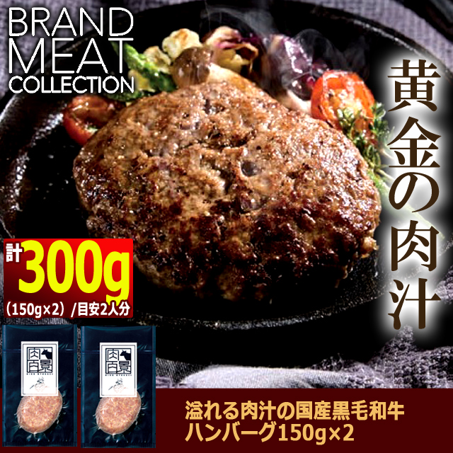 溢れる肉汁の国産黒毛和牛ハンバーグ150g×2 送料無料 肉の旨味 ブランド肉