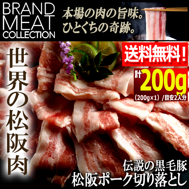 伝説の黒毛豚松阪ポーク切り落とし200g 送料無料 肉の旨味 ブランド肉
