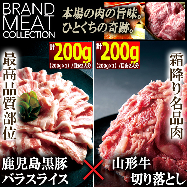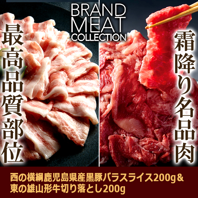 送料無料!西の横綱鹿児島県産黒豚バラスライス200g&東の雄山形牛切り落とし200g
