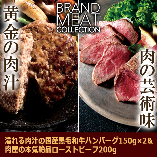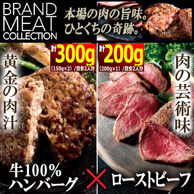 送料無料!溢れる肉汁の国産黒毛和牛ハンバーグ150g×2&肉屋の本気絶品ローストビーフ200g