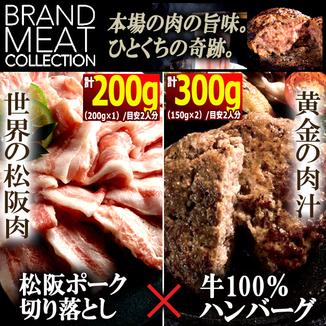 伝説の黒毛豚松阪ポーク切り落とし200g&溢れる肉汁の国産黒毛和牛ハンバーグ