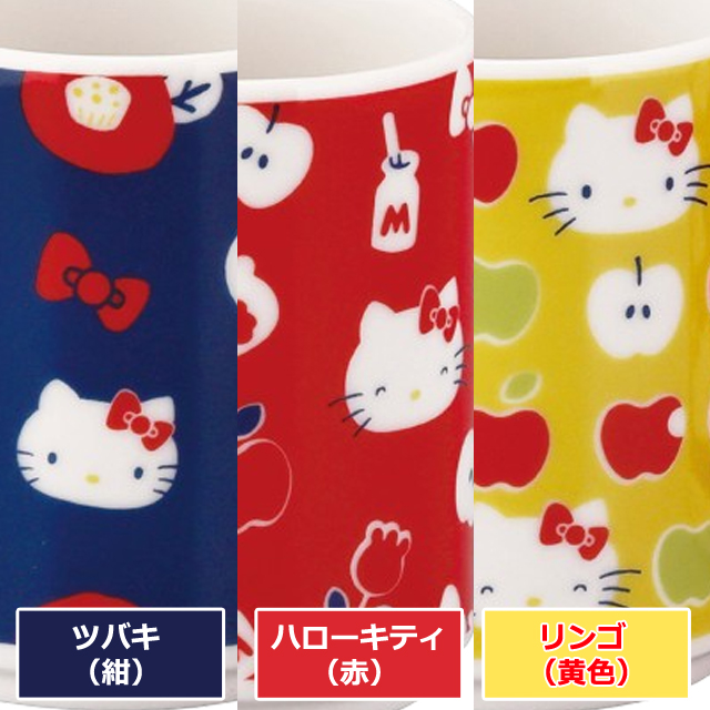 | 仕様 | ■商品サイズ:直径75×H100mm(300ml/満水)■重量:約230g■種類:ツバキ、リンゴ、ハローキティ■材質:磁器■生産:日本■※電子レンジ、食器洗浄機使用可※オーブン使用不可■JAN:ツバキ(紺)/4979855143414、リンゴ(黄色)/4979855143421、ハローキティ(赤)/4979855143438 |