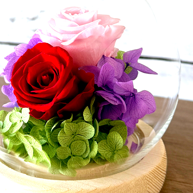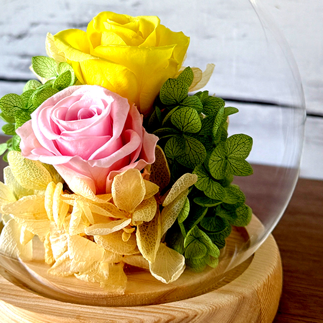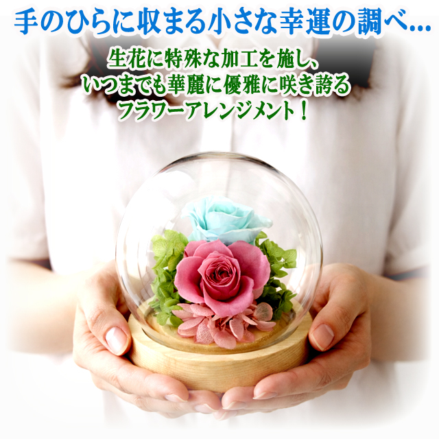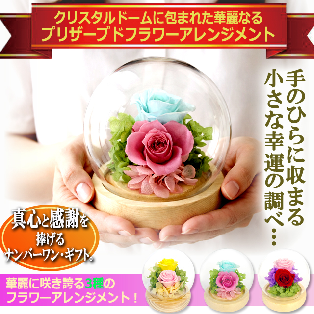 幸せのプリザーブドフラワーアレンジメント クリスタルドームセット 水やり不要