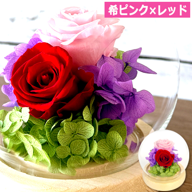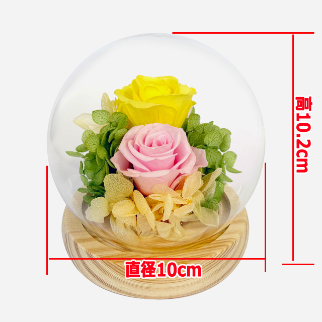 | 仕様 | ■サイズ:約直径10×高10.2cm ■重量:約117g ■材質:[本体]プリザーブドフラワー(自然素材)、 フローラルフォーム(フェノール樹脂)[ドーム]ガラス・木 ■特徴:水やり不要、約1-3年保存 ■日本製 ■種類:【希ピンク×レッド】【希イエロー×ピンク】【希ブルー×ピンク】 |