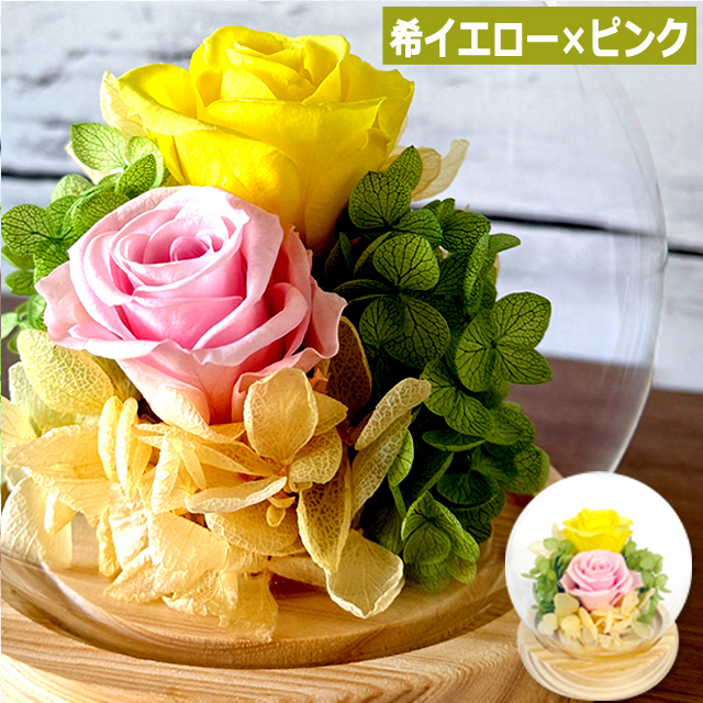幸せのプリザーブドフラワーアレンジメント クリスタルドームセット [YISM-K14986]