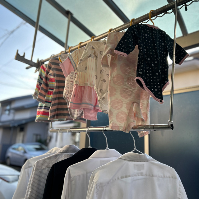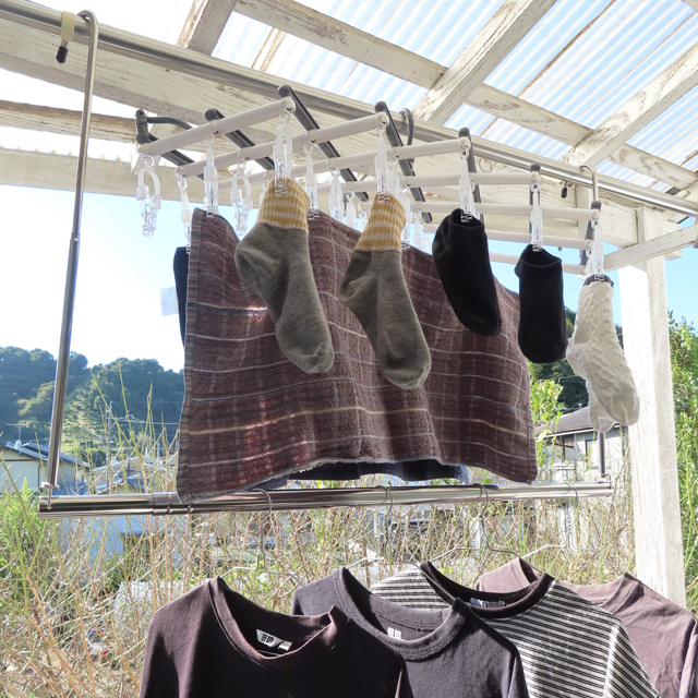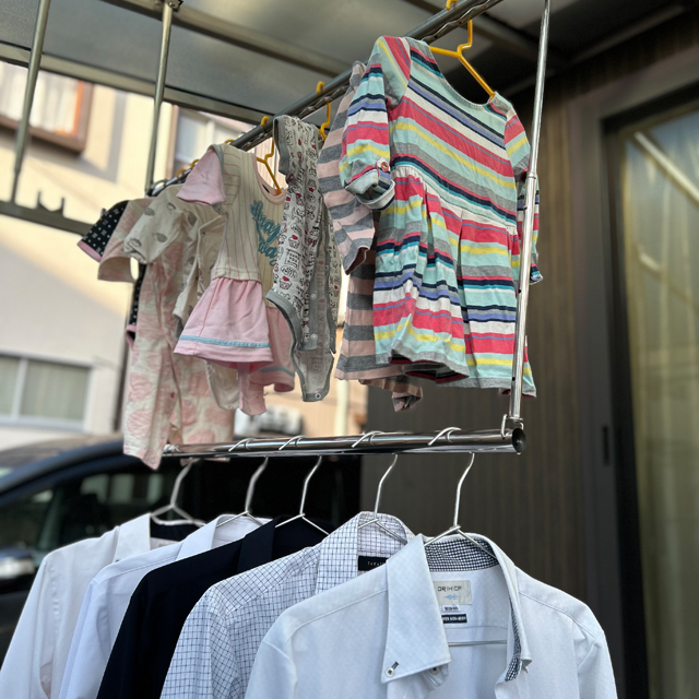 2段になった物干し部分に、干しきれなかった洗濯物をどんどんかけれます。