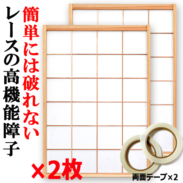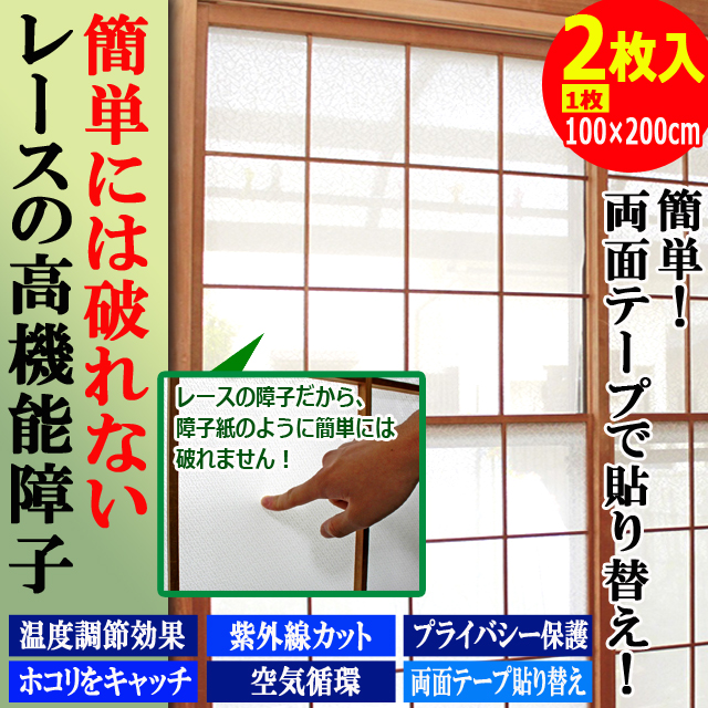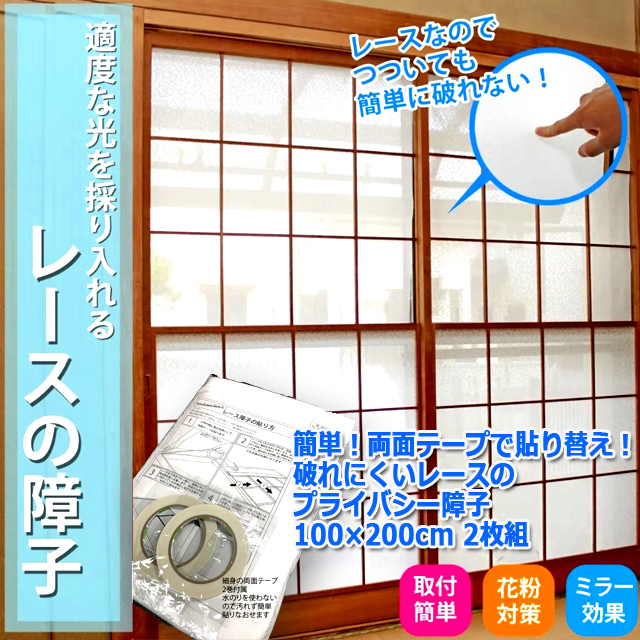 簡単!両面テープで貼り替え!破れにくいレースのプライバシー障子 100×200cm 2枚組