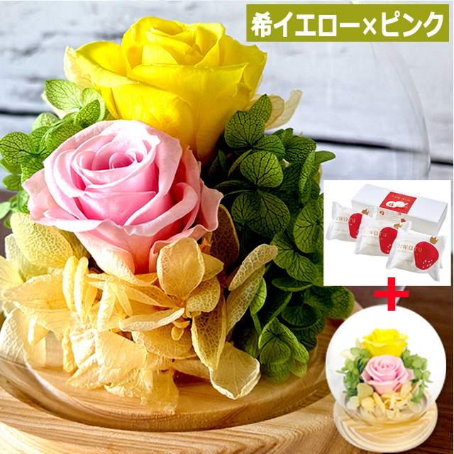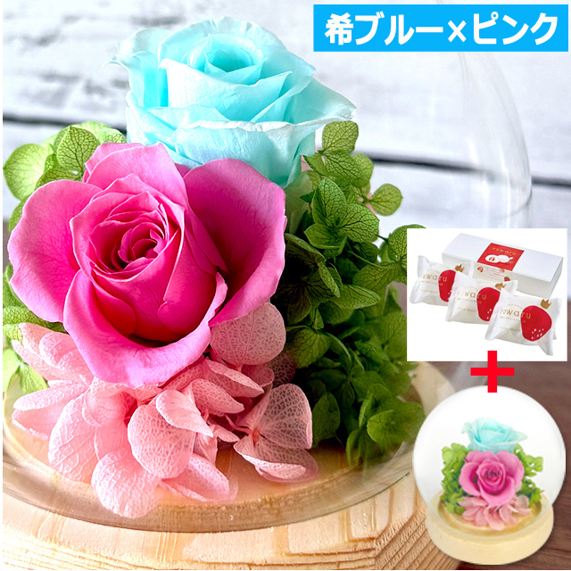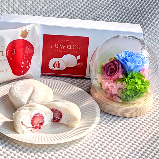 あまおうクリームいちご大福&プリザーブドフラワーアレンジメントinクリスタルドーム