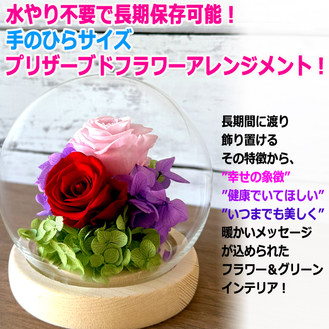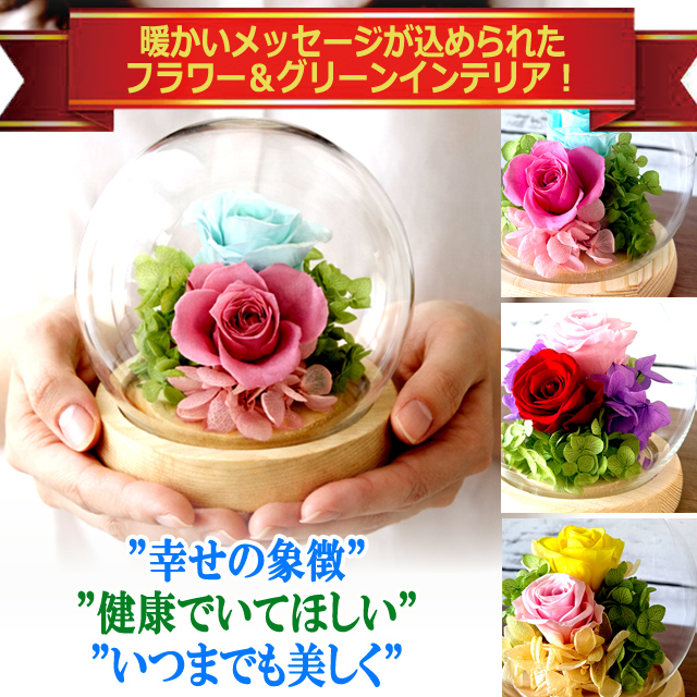 幸せのプリザーブドフラワーアレンジメント クリスタルドームセット ギフト