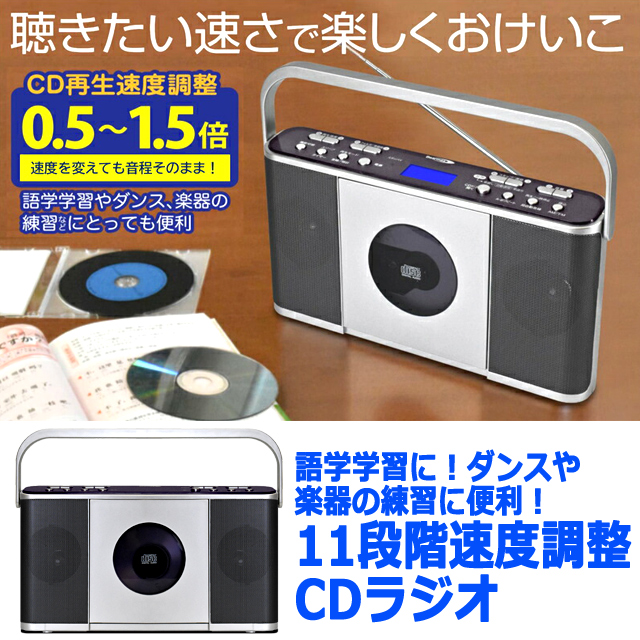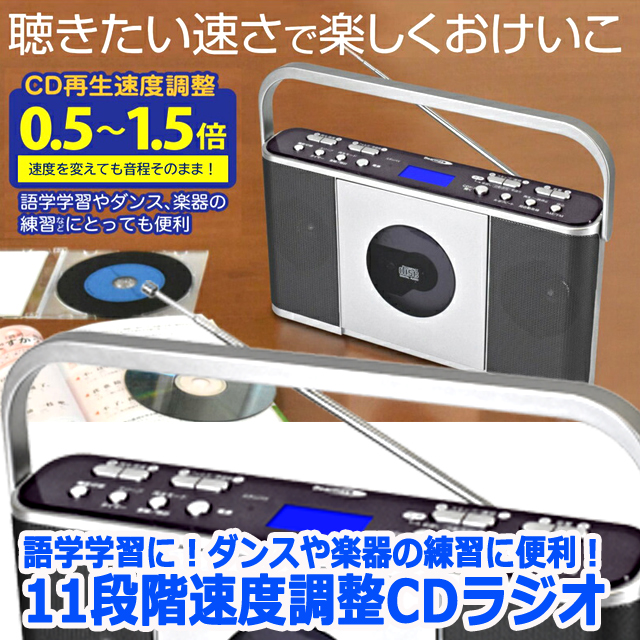 語学学習に!ダンスや楽器の練習に便利!11段階速度調整CDラジオ