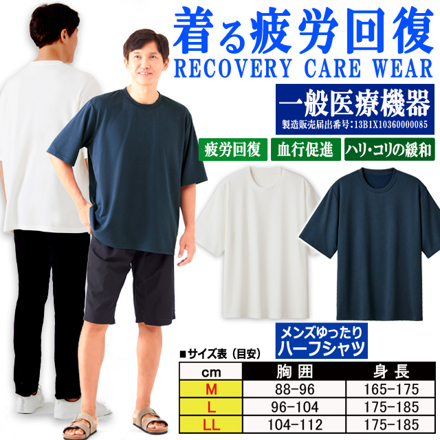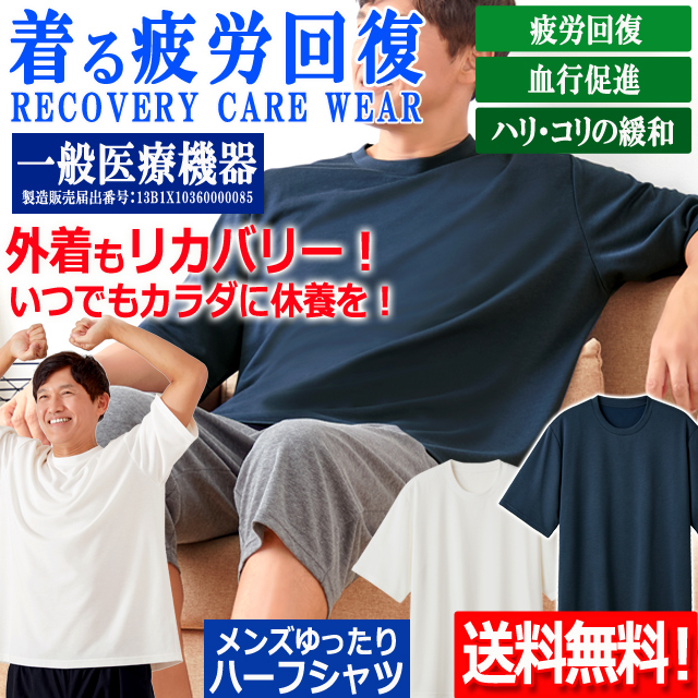 一般医療機器 着る疲労回復リカバリーケアウエア メンズゆったりハーフシャツ