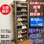 空間マジック 9段スリムシューズラック (シューズボックス,大容量,省スペース,玄関,撥水,高さ調節,カバー付き) [FP-266]