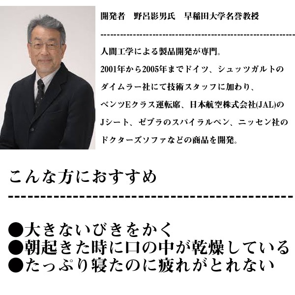 頸椎をサポートし、顎を上げて気道を広げる事により、スムーズな呼吸を実現!