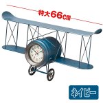 レトロバイプレーンウォールクロック(壁掛け時計,アンティーク,飛行機,レトロ,複葉機,二枚翼,66センチ,66cm,文字盤,インテリア) [HABE-124]