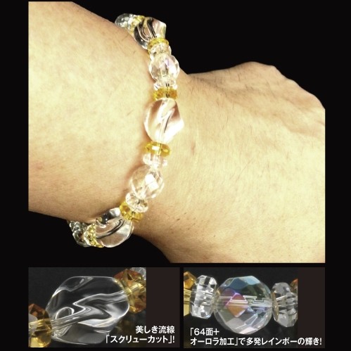 スクリューカットイエロークリスタルブレス(メンズ/フリーサイズ/開運/黄金/ゴールド/クリスタル/オーロラ/聖衣水晶ブレス/黄水晶/オーロラ水晶)