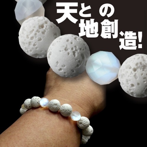 ラバストーン・ムーンライトミステリアスブレス(メンズ/サイズフリー/開運/溶岩石/ルナフラッシュ/ムーンストーン/大地/月光/ムーンライト/ブレスレット)