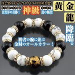 黄金龍×モノトーンパワーストーンブレス(メンズ,金運祈願,開運,金運,龍キーホルダー付き,ブレスレット,ホワイトハウライト,オニキス,昇龍) [HI-48]