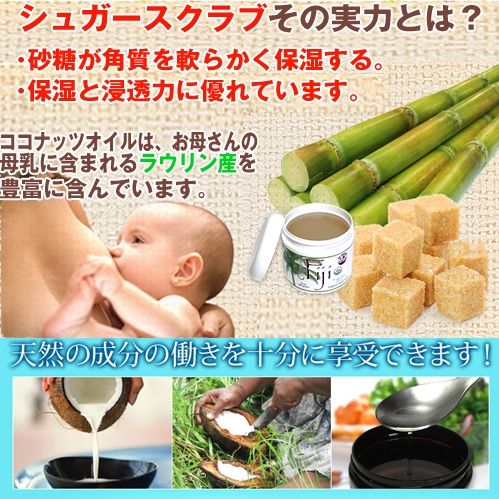 USDA認証の「フィジー産有機ココナッツオイル」と同じくUSDA認証の「オーガニックシュガー」だけを使用した天然スクラブ。