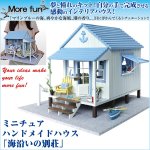 ミニチュアハンドメイドハウス「海沿いの別荘」(ドールハウス,手作り,組み立て,インテリア,LEDライト,オルゴール,模型) [INN-51]