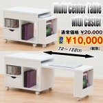 キャスター付きマルチセンターテーブル(送料込/机/ノートPC/完成品/キャスター付き/スライドテーブル/収納/白/ワイド72〜122cm)