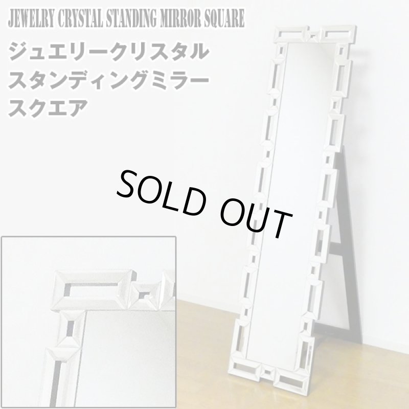 送料無料ジュエリークリスタルスタンディングミラー「スクエア」 (鏡,スタンドミラー,室内姿見鏡,全身ミラー,玄関姿見,150cm)