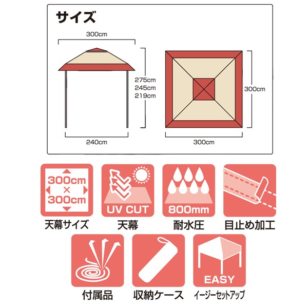 ワンアクションタープEX300(タープテント.キャンプ,バーベキュー,アウトドア,ワンタッチ組立,UVカット,キャリーバーッグ付)