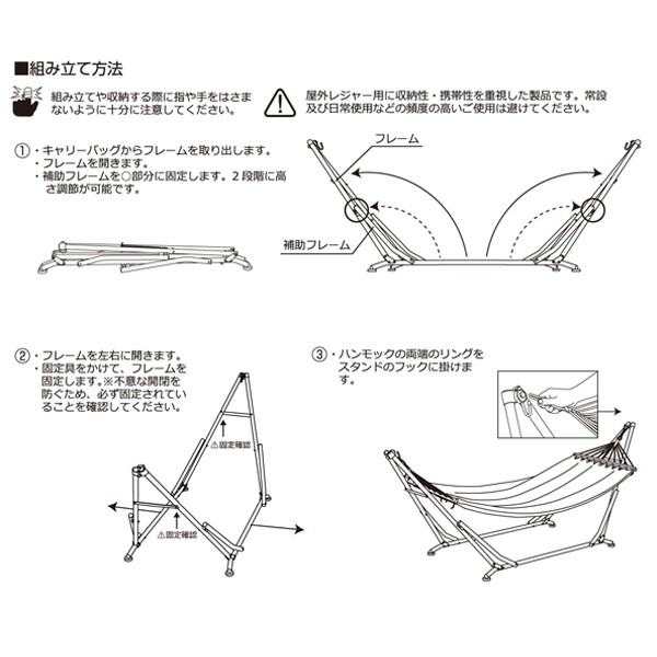 自立式ハンモック(屋内・屋外併用,アウトドアキャンプファニチャースチールフレーム,耐荷重80kg,簡単組立て,持ち運び可能,収納袋,キャリーバッグ) [KWS-15]