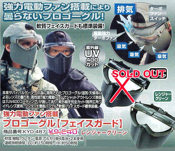 強力電動ファン搭載プロゴーグル「フェイスガード」(サバゲー,曇らない,フルフェイスゴーグル,電動ターボファン) [KYO-487]