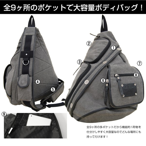 ボディにフィットする”トライアングル形状”!9ポケット&大容量イン・BODY-BAG!!