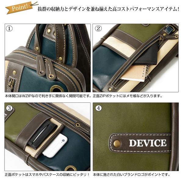 DEVICEトリコカラーボディバッグ「DGB」(メンズ,デバイス,トリコカラー,ボディバッグ,ショルダーバッグ,鞄,オトナコーデ,スマート) [RDI-43]