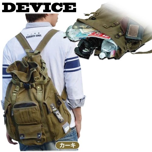 DEVICE[デバイス]2WAYボンサック/HHR(リュック/ズタ袋/大容量/ウオッシュキャンバス/軽量/収納ポケット多数/カーキ/ブラック) [RDI-9]