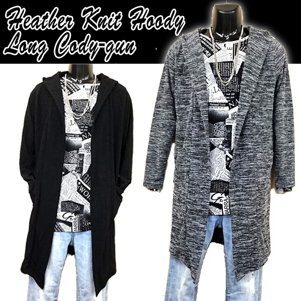 杢ニットフードロングコーディガン(RINGS,メンズ,ロングカーディガン,ニットコート,薄手ニット,ストール風カーディガン,ガウン風ニットコート) [RNG-136005]