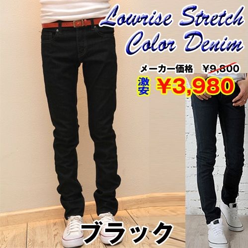 ローライズ/ストレッチカラーデニム/ ブラック (メンズ/タイト)