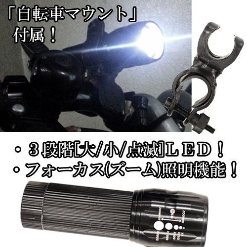 全長10cmのコンパクトさながら、恐るべしスパイ仕様LEDライト!Q5型LEDを使用し、240ルーメンの照明力を発揮!尚、フラッシュライトは大点灯、小点灯、点滅モードの3段階のライティングが可能!そして、本体の伸縮でフォーカス機能(ズーム)を搭載!ピンポイント照射ができるスーパーマグライトなのです!!又、付属のマウントを使用して、自転車ライトとして取り付ける事も可能!