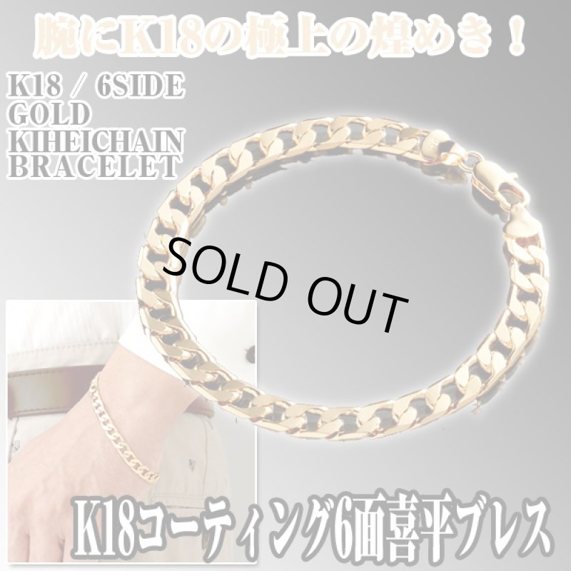 K18コーティング6面喜平ブレス(18金喜平ブレスレット,GPコーティング,幅7mm,喜平チェーン,ゴールド)