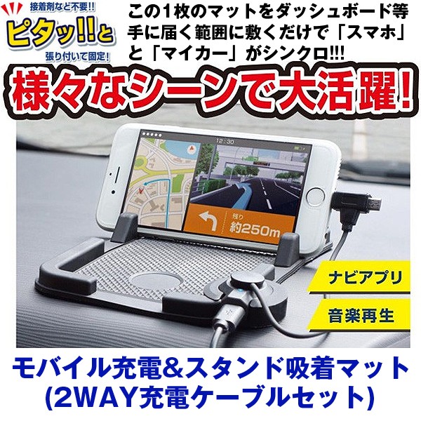 モバイル充電&スタンド吸着マット(2WAY充電ケーブルセット) (スマホ,iPhone,充電しながら,ナビアプリ,ハンズフリー)