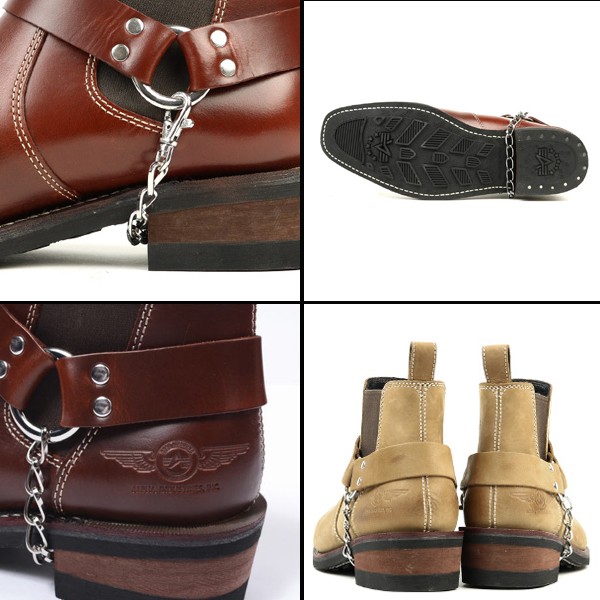 送料無料ALPHA本革バイカーズサイドゴアリングブーツ(グッドイヤーウェルト製法,ロゴ刻印2WAY仕様,リングベルト) [STD-AFB-20011]