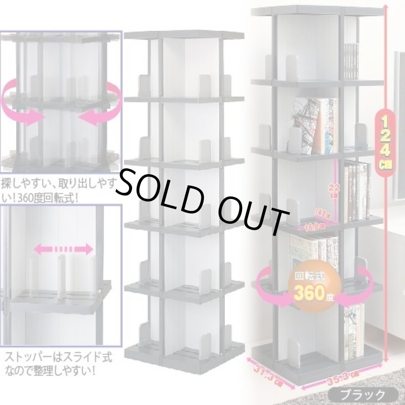 360度回転 収納ラック 収納タワー CD DVD 大容量 高さ124cm 強化プラスチック ストッパー付き 日本製