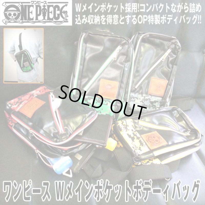 ワンピースWメインポケットボディバッグ (レザー調,鞄,コンパクト,大開口ファスナー,デジタル迷彩,エンブレム)