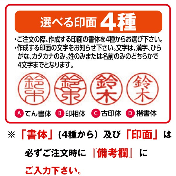 書体は4種からお選びいただけます。(てん書体、印相体、古印体、楷書体)