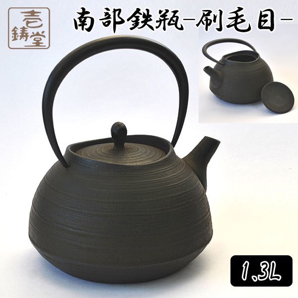 本場岩手産の南部鉄瓶[刷毛目(はけめ)1.3L]