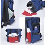 フラップ&バックルホールド、サイドファスナー、大容量収納力、シンプルで軽量なナイロン素材…