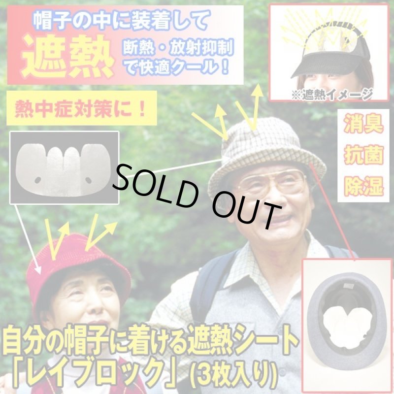 自分の帽子に着ける遮熱シート「レイブロック」(3枚入り)