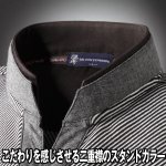 襟まわり、前立て、ポケット部分に切替の生地を使用し、高級感のある雰囲気に仕上げています。