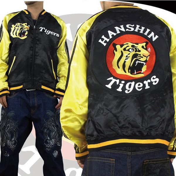 送料無料!龍桜X阪神タイガースコラボオフィシャルスカジャン「虎に桜吹雪」(リバーシブル/球団オフィシャル/メンズ/刺繍/レーヨンサテン) [ADO-HTJ003]