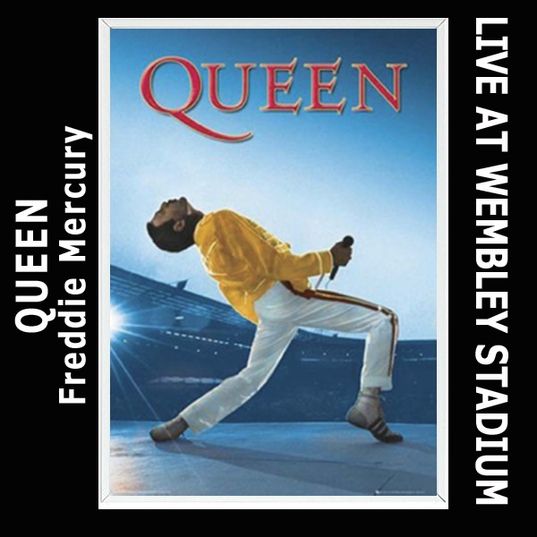 QUEENフレディ・マーキュリー「ウェンブリー」特大ポスター+ホワイトアルミフレームセット
