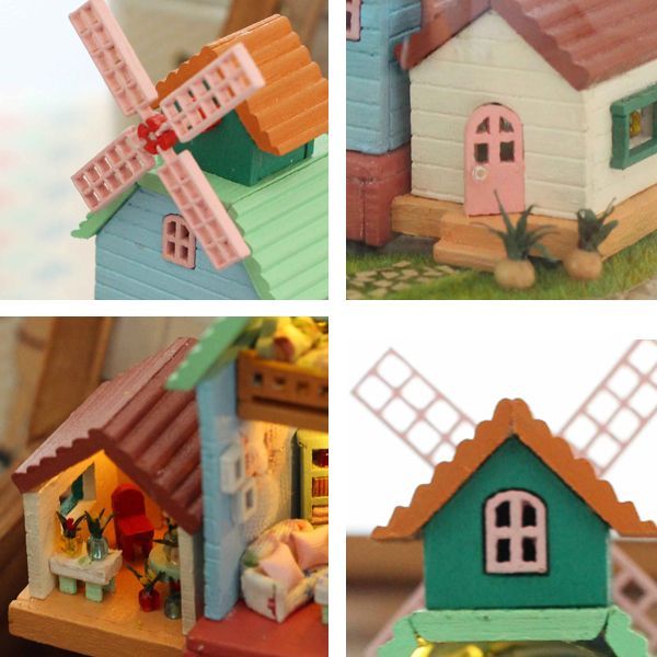 ガラスボールの中のミニチュアハウス「風車ハウス」[デザインフック付]