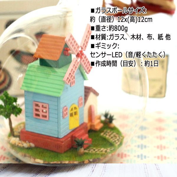 | 仕様 | ■ガラスボールサイズ:約(直径)12x(高)12cm ■重さ:約800g ■材質:ガラス、木材、布、紙 他 ■ギミック:センサーLED(音/軽くたたく) ■セット内容:本体パーツ、サウンドセンサー、LED灯、ガラスボール、 デザインフック、説明書 ■作成時間(目安):約1日 |