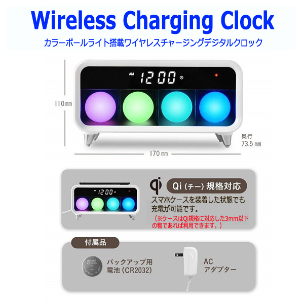 カラーボールライト搭載ワイヤレスチャージングデジタルクロック